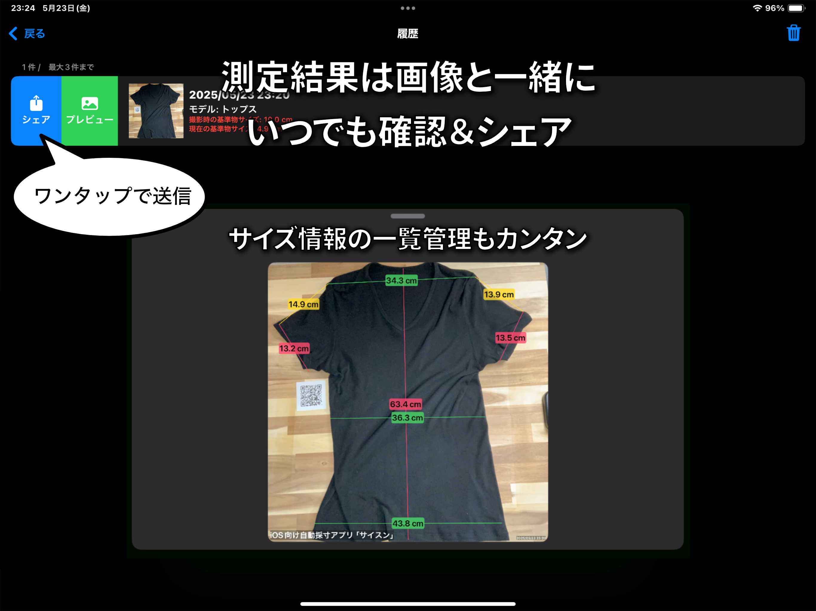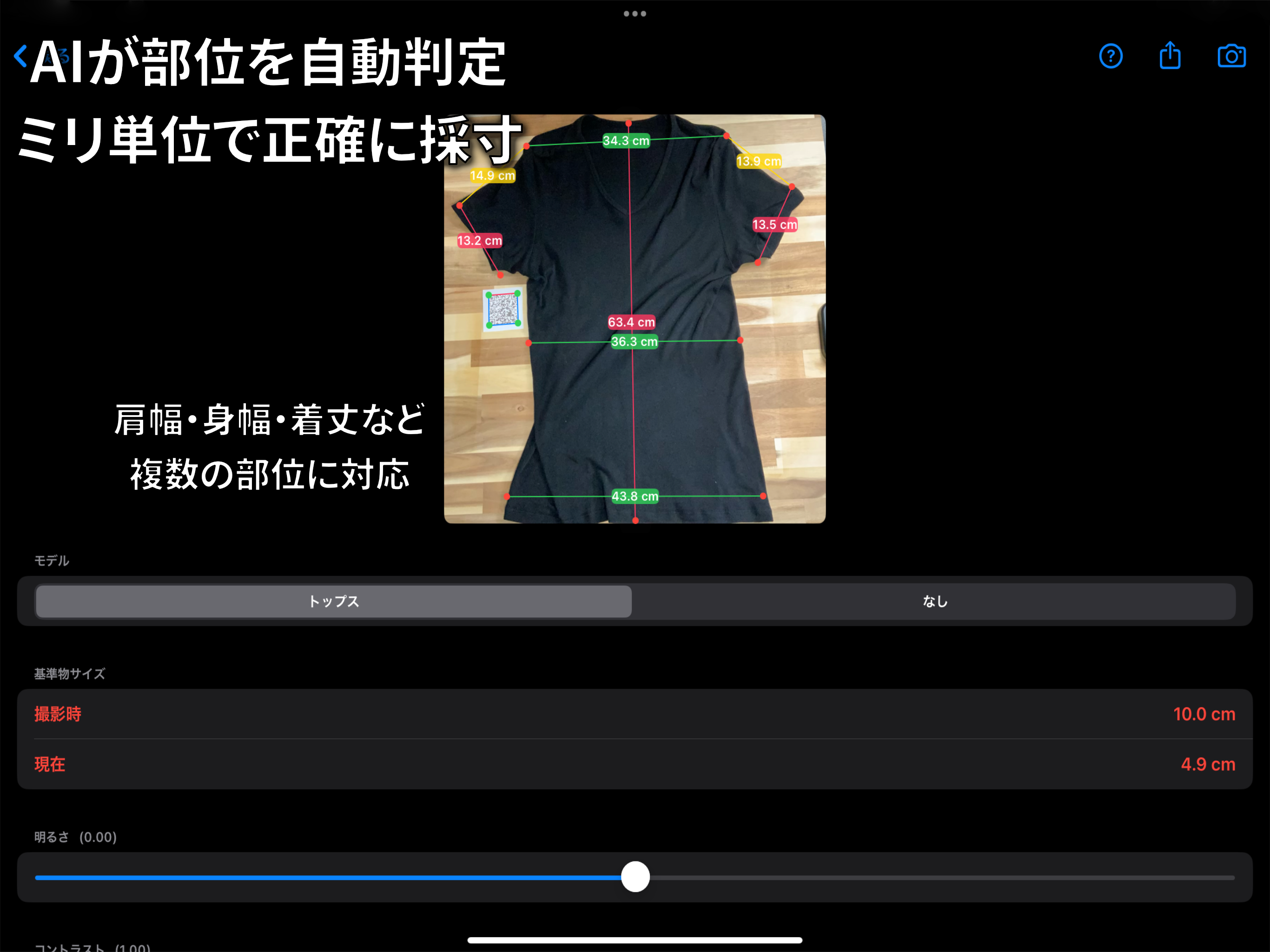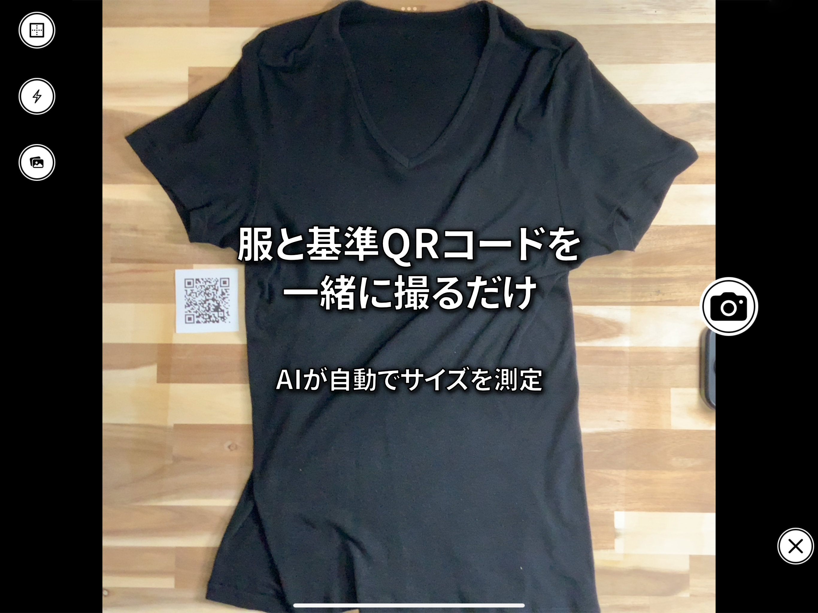 AIで衣類サイズの測定をサポートするアプリです。撮影した画像をもとに、サイズ確認を手助けします。